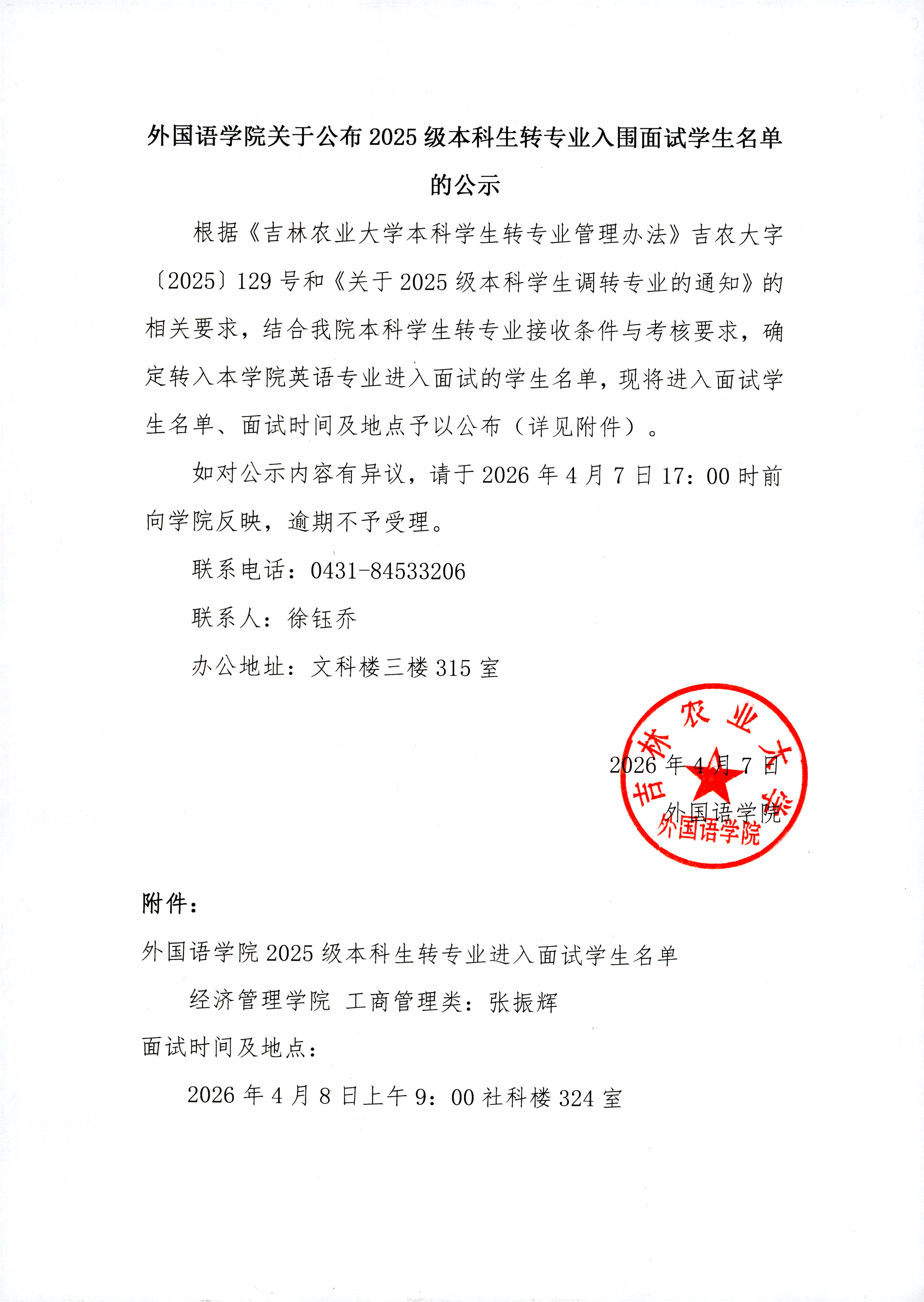 地址:长春市新城大街2888号吉林农业大学外国语学院