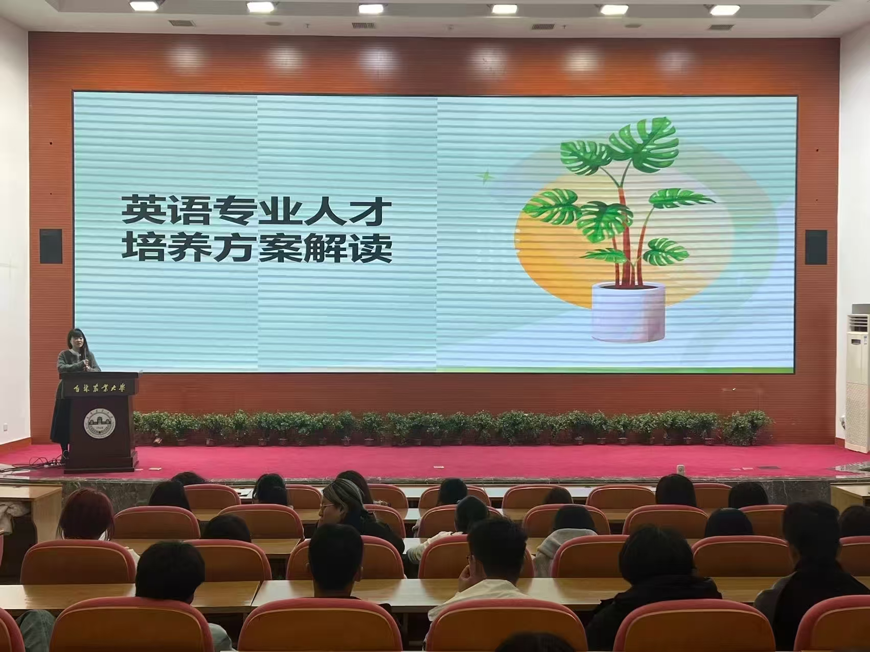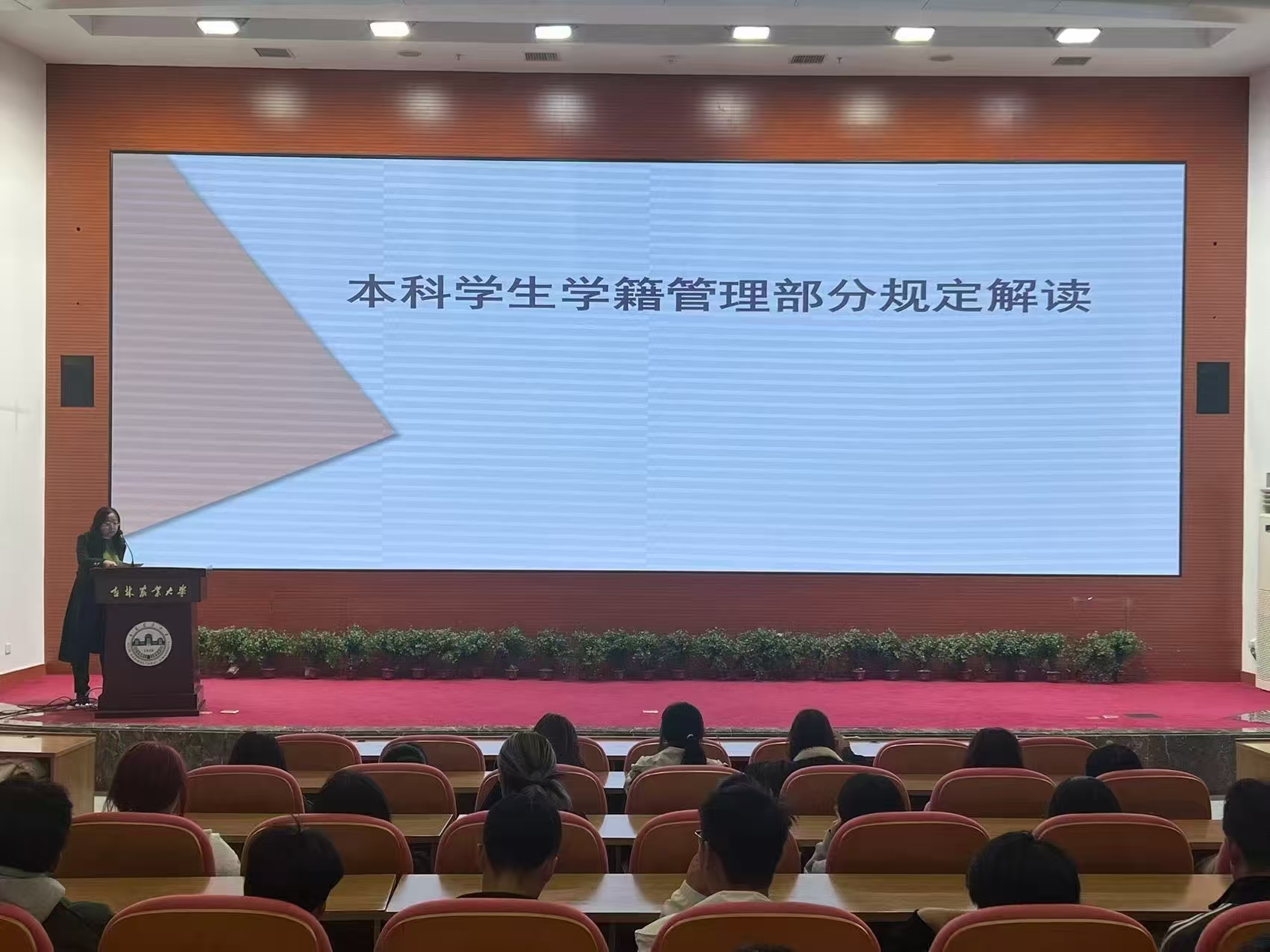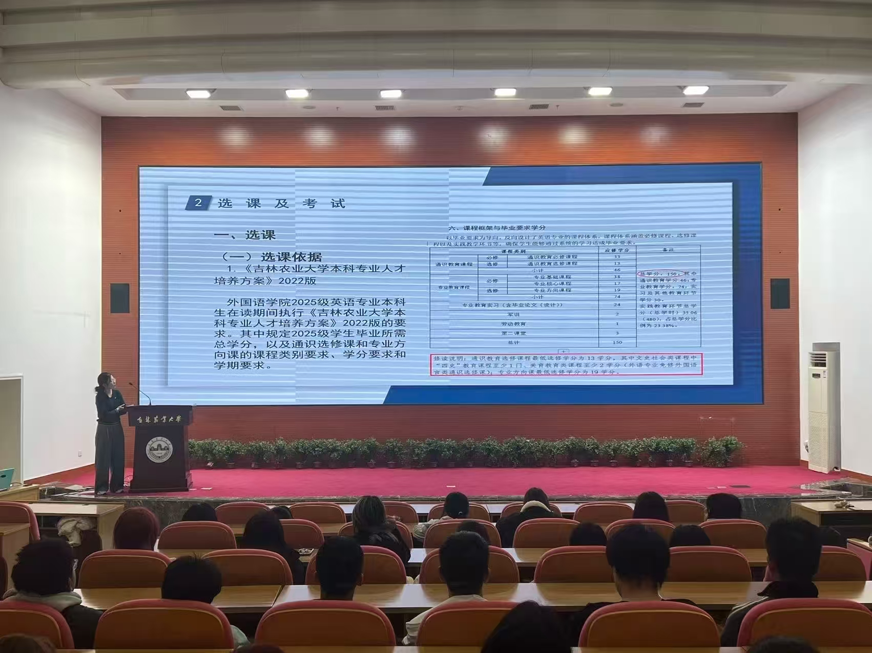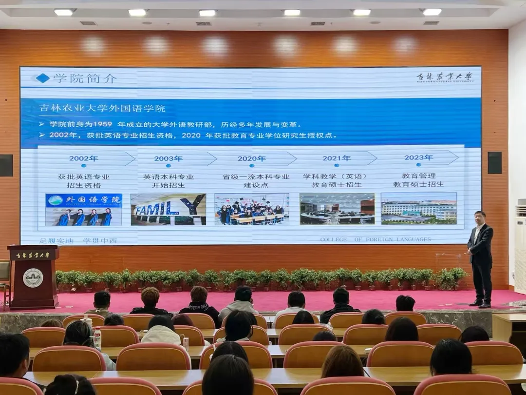 会上张景伟院长做了题为“前行中的外国语学院”的主旨报告,向同学们详细介绍了学院的发展历程、师资队伍、专业发展和教科研成果等信息。副院长王允曦、英语系主任张黎黎、教学秘书徐钰乔、张丽萍等教师代表为新同学们细致解读人才培养方案、专业培养目标、课程体系、毕业论文、学科竞赛、考试要求和学籍管理规定等相关事宜,全方位助力大家把握专业学习的核心脉络,明确学业管理的规范和要求,为大学生活规划学业筑牢了根基,同时划出“行为标尺”。