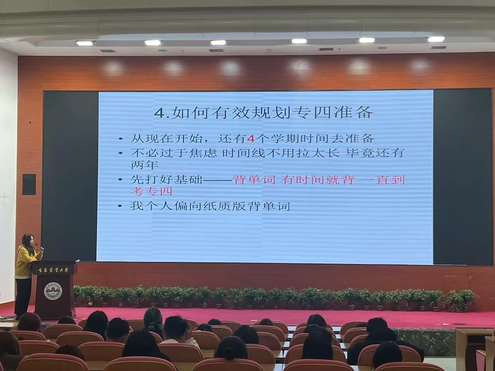 来自2022级、2023级的学生代表也分享了如何备考专业四级、打牢语言基本功,如何平衡学习和学生会工作,以及如何用丰富的校园活动为大学生活增添活力与魅力。