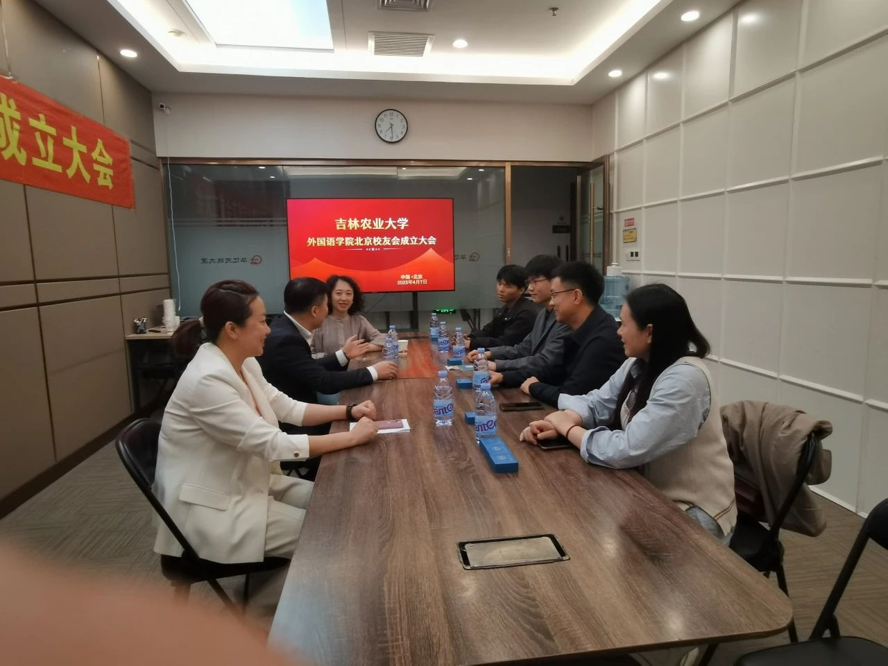 4月7日,吉林农业大学外国语学院北京校友会成立大会在北京市华亿天诚大厦三楼会议室举行。外国语学院部分班子成员以及各系部主任与来自北京地区的校友代表共同见证了这一温馨而有意义的时刻。