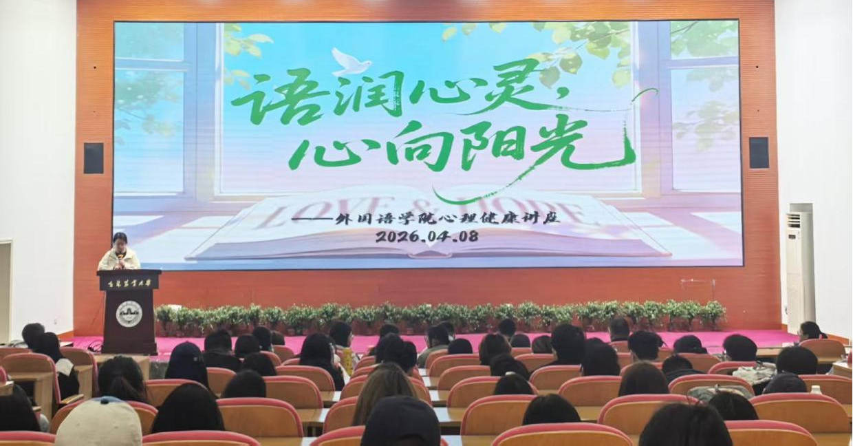 4月8日,外国语学院在学校图书馆报告厅开展“语润心灵 心向阳光”大学生心理健康讲座。本次讲座邀请学校心理健康中心曲东晨主讲,学院全体在校生参加了讲座。