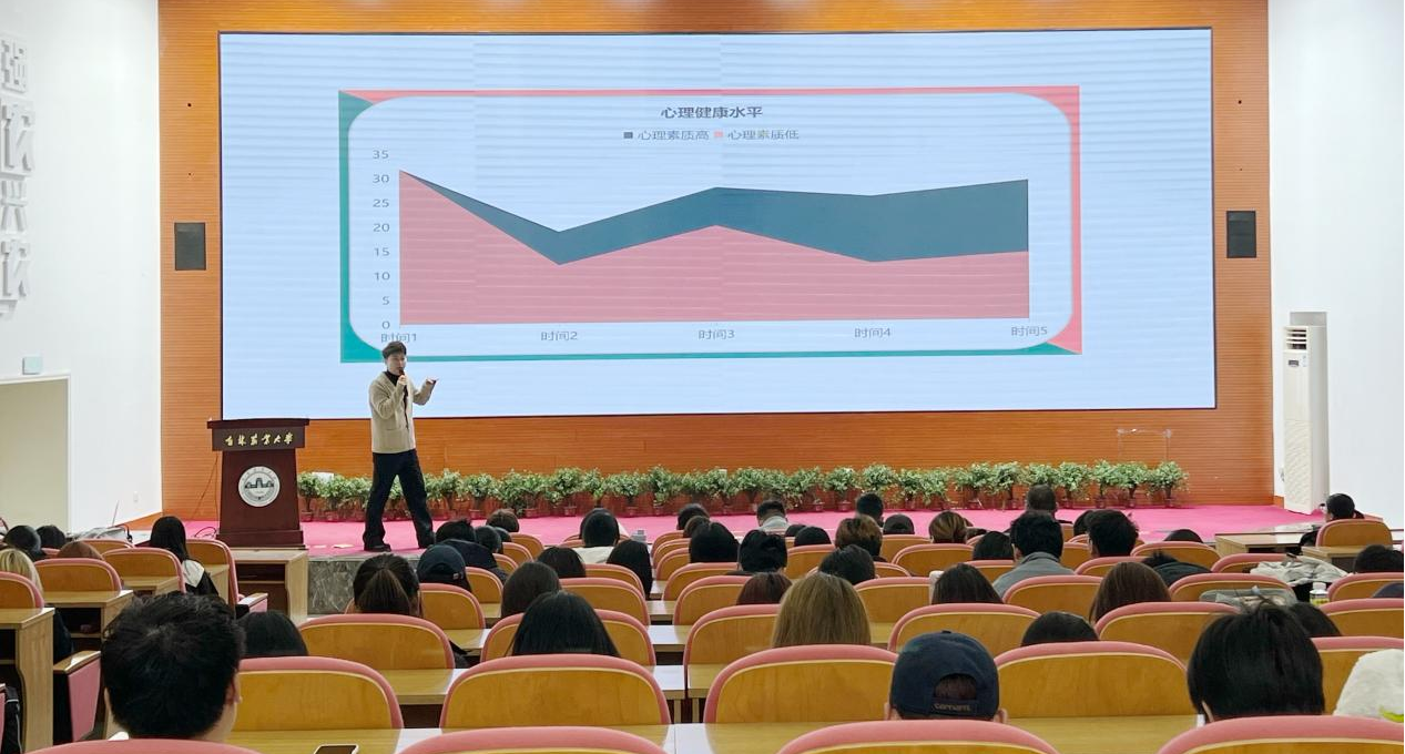 讲座中,曲东晨围绕正确认识心理健康、科学评估心理健康状态、有效提升心理健康水平三个维度展开系统讲解,详细阐释了心理健康标准,澄清了常见认知误区,并结合大学生学习生活实际,分享了情绪调节、认知重构、压力应对等实用方法,引导学生科学关注自我、关爱自我,以积极阳光心态面对学习和生活。